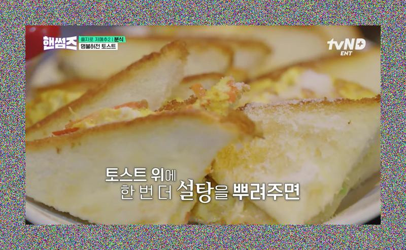 드디어 등장한 을지로 분식집의 명물, 설탕 토스트! 철판에서 노릇하게 구워진 빵 위에 계란물을 입히고, 그 위에 설탕을 솔솔 뿌린 비주얼은 보기만 해도 침샘을 자극합니다. 특히 겉면에 뿌려진 설탕이 포인트! 차태현의 설명처럼, 설탕을 안에 넣지 않고 겉에 뿌려 아삭한 식감을 살린 것이 이 토스트 맛의 비결입니다. 배부르다던 오상욱 선수마저 "설탕 없으면 안 먹으려 했는데"라며 적극적으로 달려드는 모습! 이 마성의 토스트를 차지하기 위해 핸썸가이즈 멤버들은 또다시 치열한 가위바위보 대결을 펼칩니다. 단순한 토스트가 아닌, 이곳만의 추억과 맛이 담긴 특별한 먹방 메뉴임이 틀림없습니다.